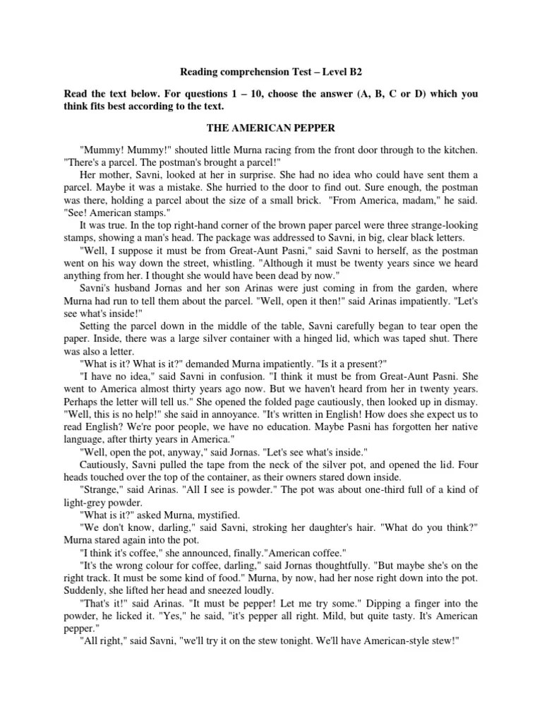 Reading Comprehension Tests B2 Pdf